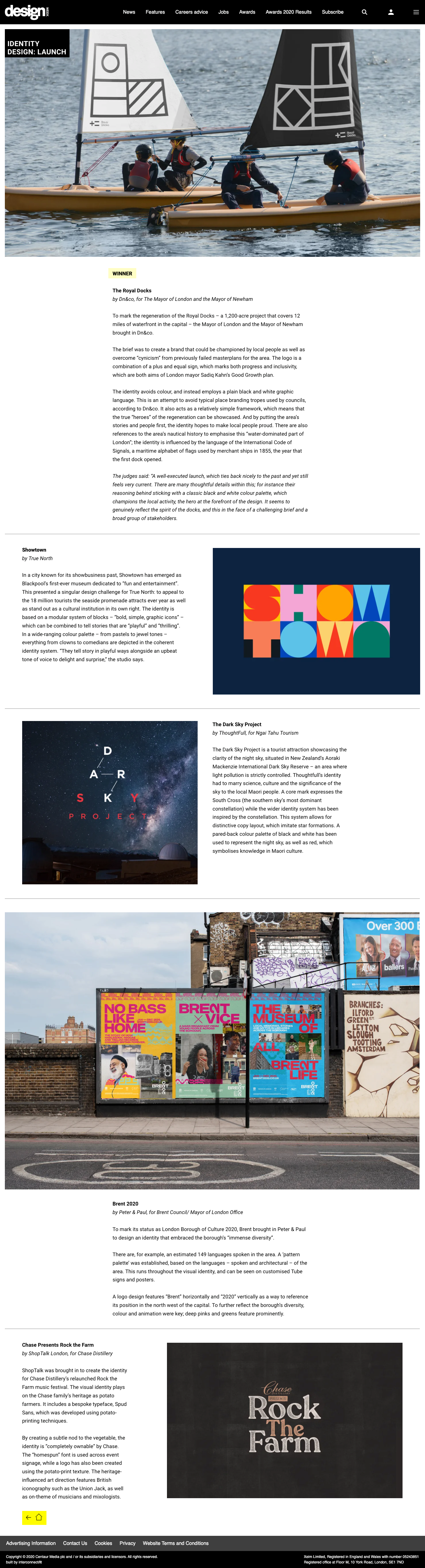 Royal Docks wins Identity Design: Launch at the Design Week Awards 2020
